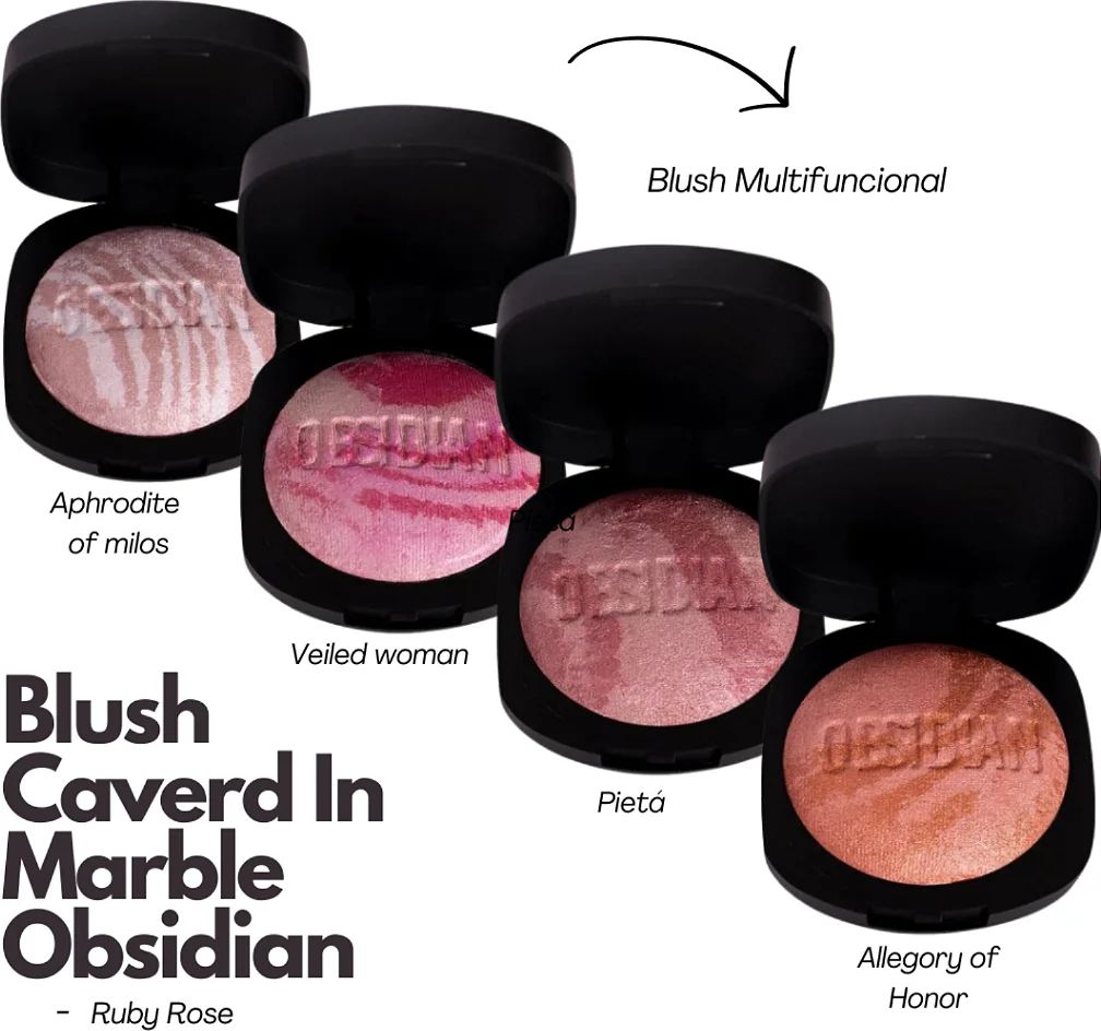 O Blush Multifuncional Ruby Rose Obsidian Carved In Marble é uma escolha versátil para quem deseja um produto que funcione como blush, iluminador e sombra. Com sua textura sedosa e macia, graças à técnica assada, ele proporciona alta pigmentação e fácil aplicação, permitindo uma variedade de acabamentos.